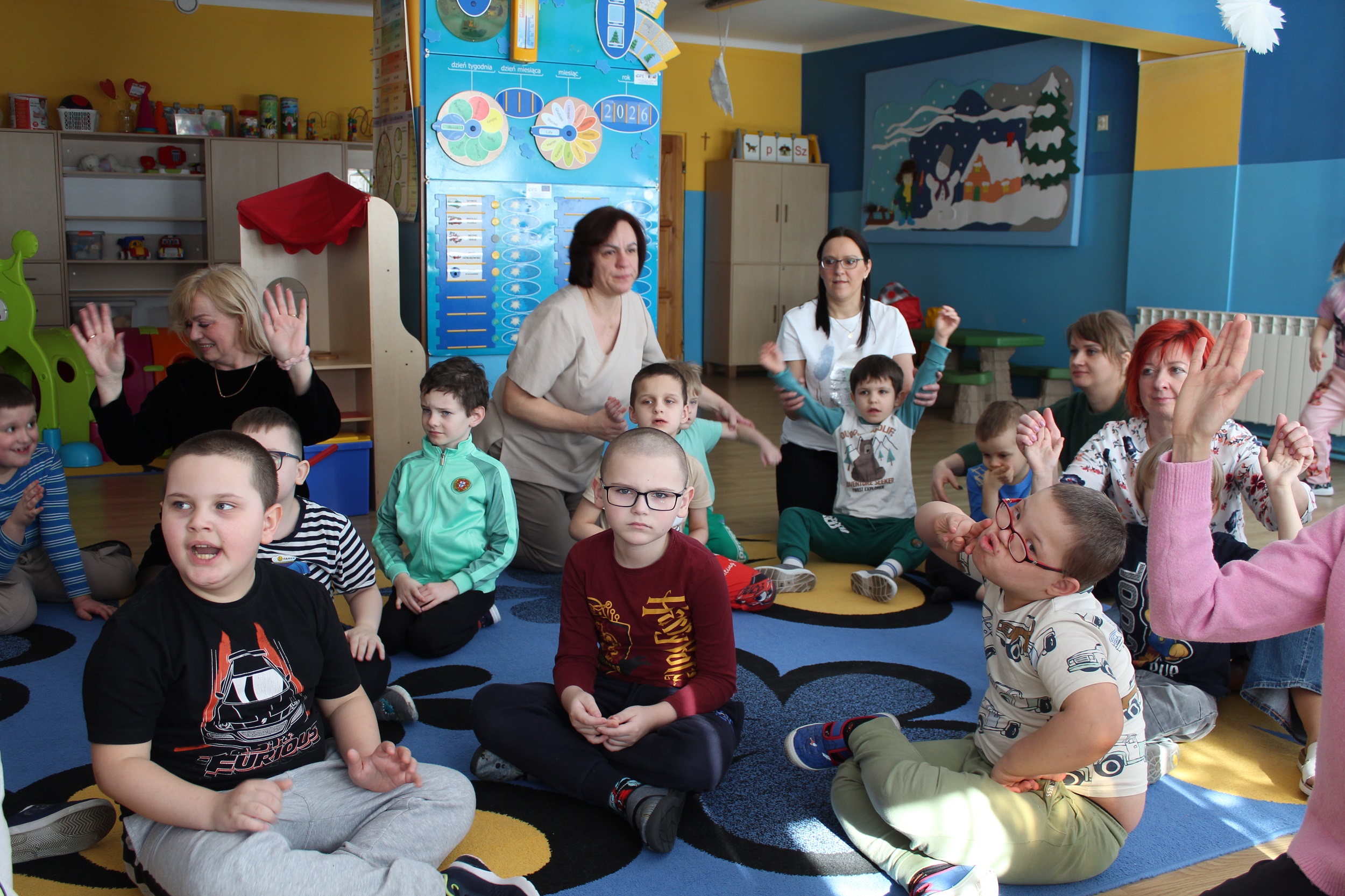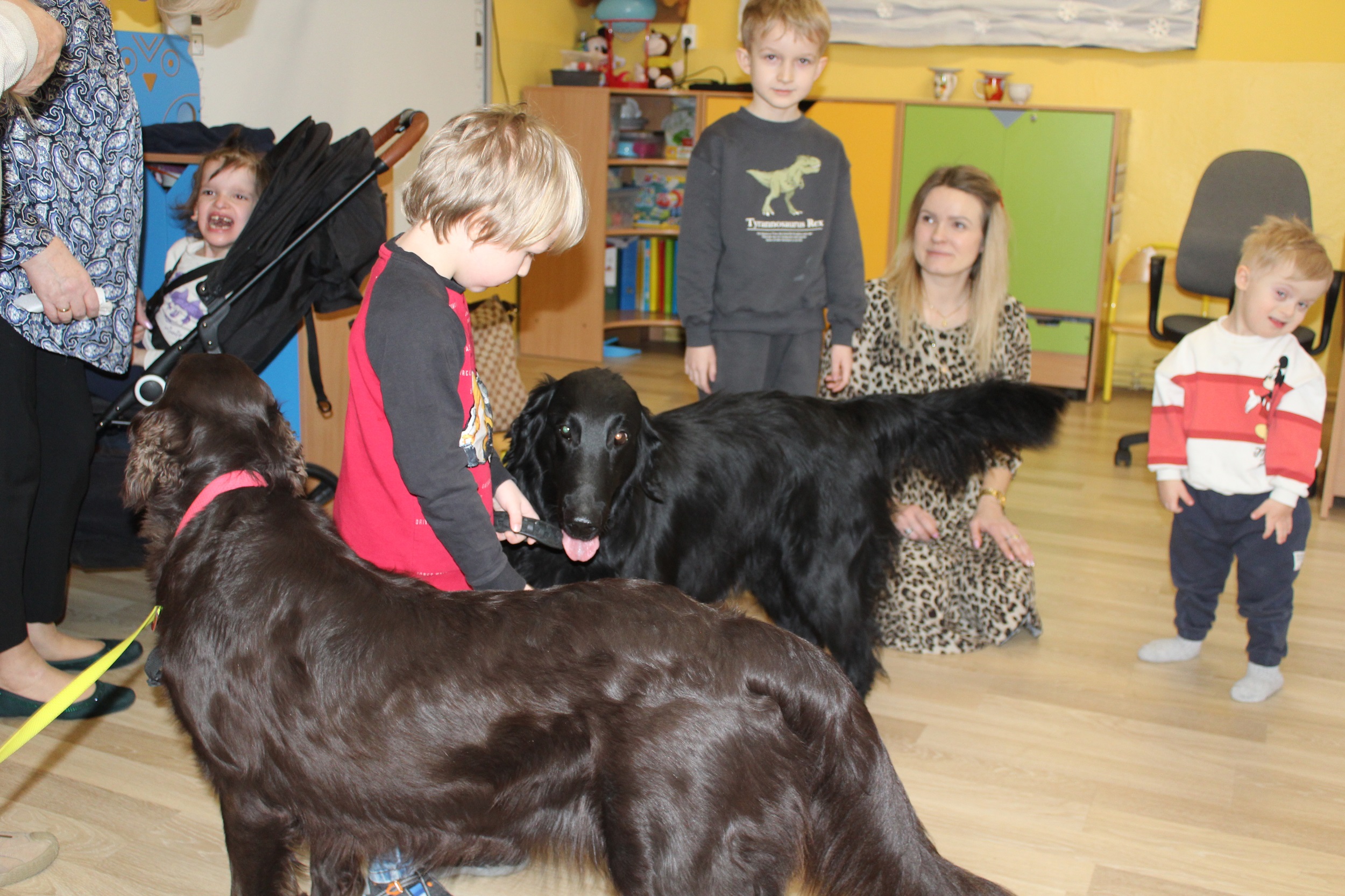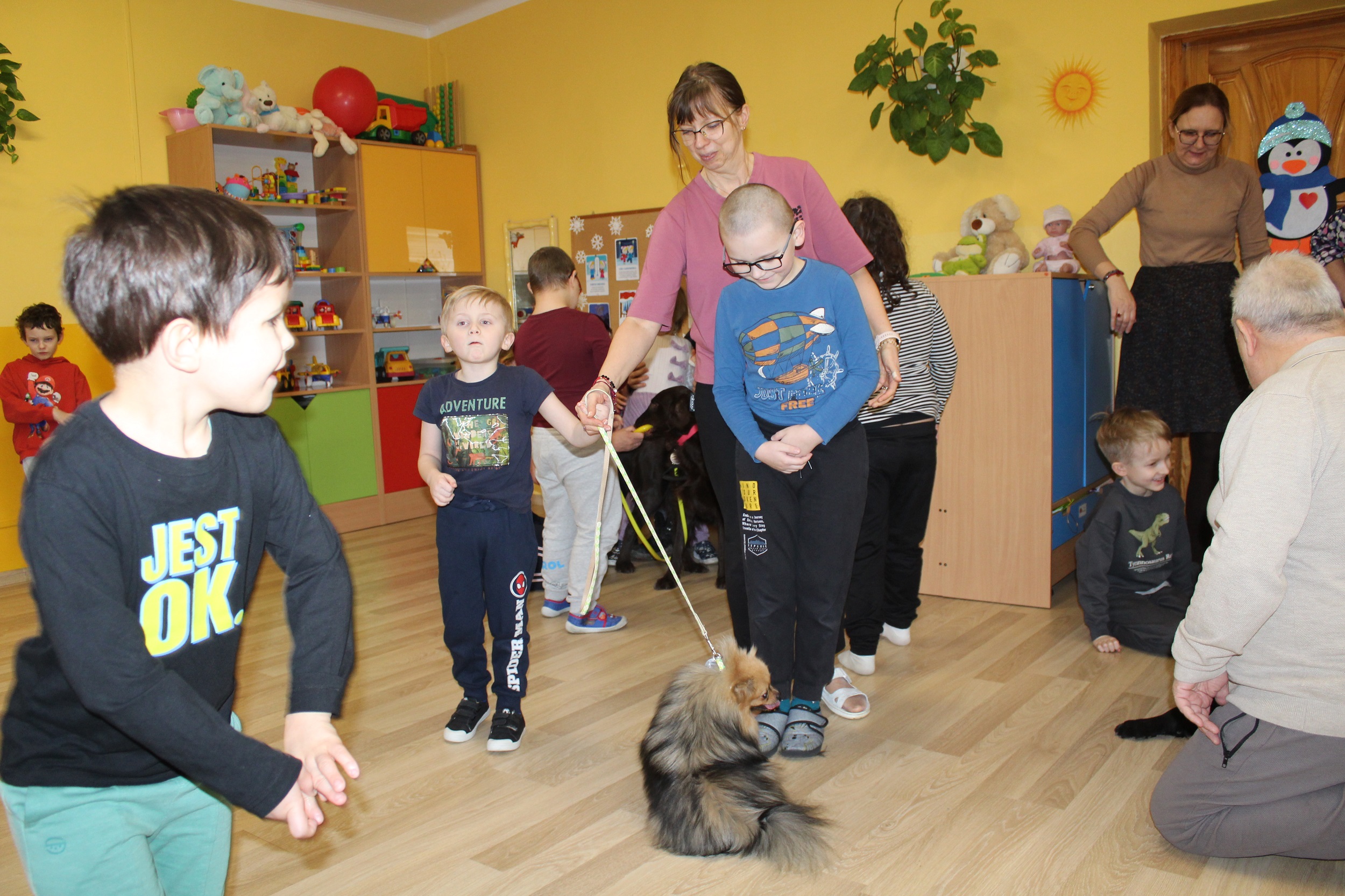 W dniach 25 i 26 lutego 2026 roku odbyły się w naszym przedszkolu Dni otwarte. Jak co roku przyszłe przedszkolaki i ich rodzice mieli możliwość obejrzenia przedszkola oraz poznania organizacji pracy w placówce. Nasi Goście wzięli udział w zajęciach dogoterapii prowadzonych przez terapeutów Fundacji Ama Canem z Łodzi, które były okazją do rozwijania zaufania i nawiązywania pozytywnej więzi z czworonogami. Uczestniczyli także w zajęciach rytmiczno - umuzykalniających, podczas których przedszkolaki doskonaliły umiejętności wokalne oraz rozwijały inne formy ekspresji muzycznej: ilustrowały gestem i ruchem treść piosenek, tworzyły akompaniament do utworów na instrumentach perkusyjnych.