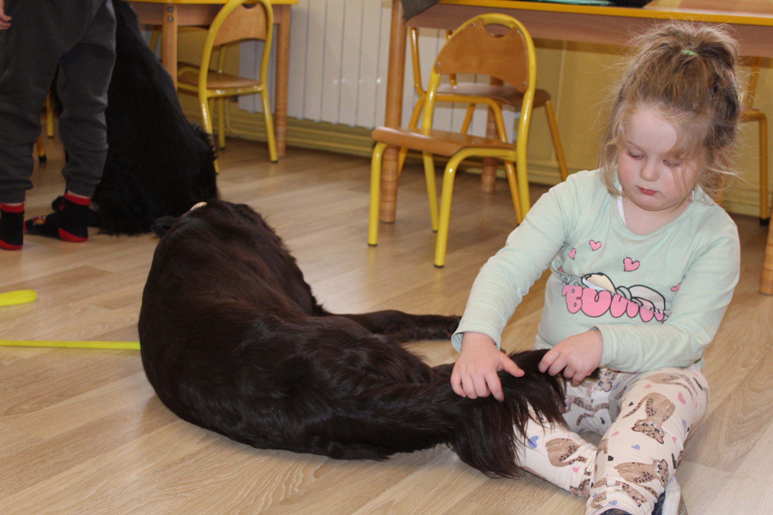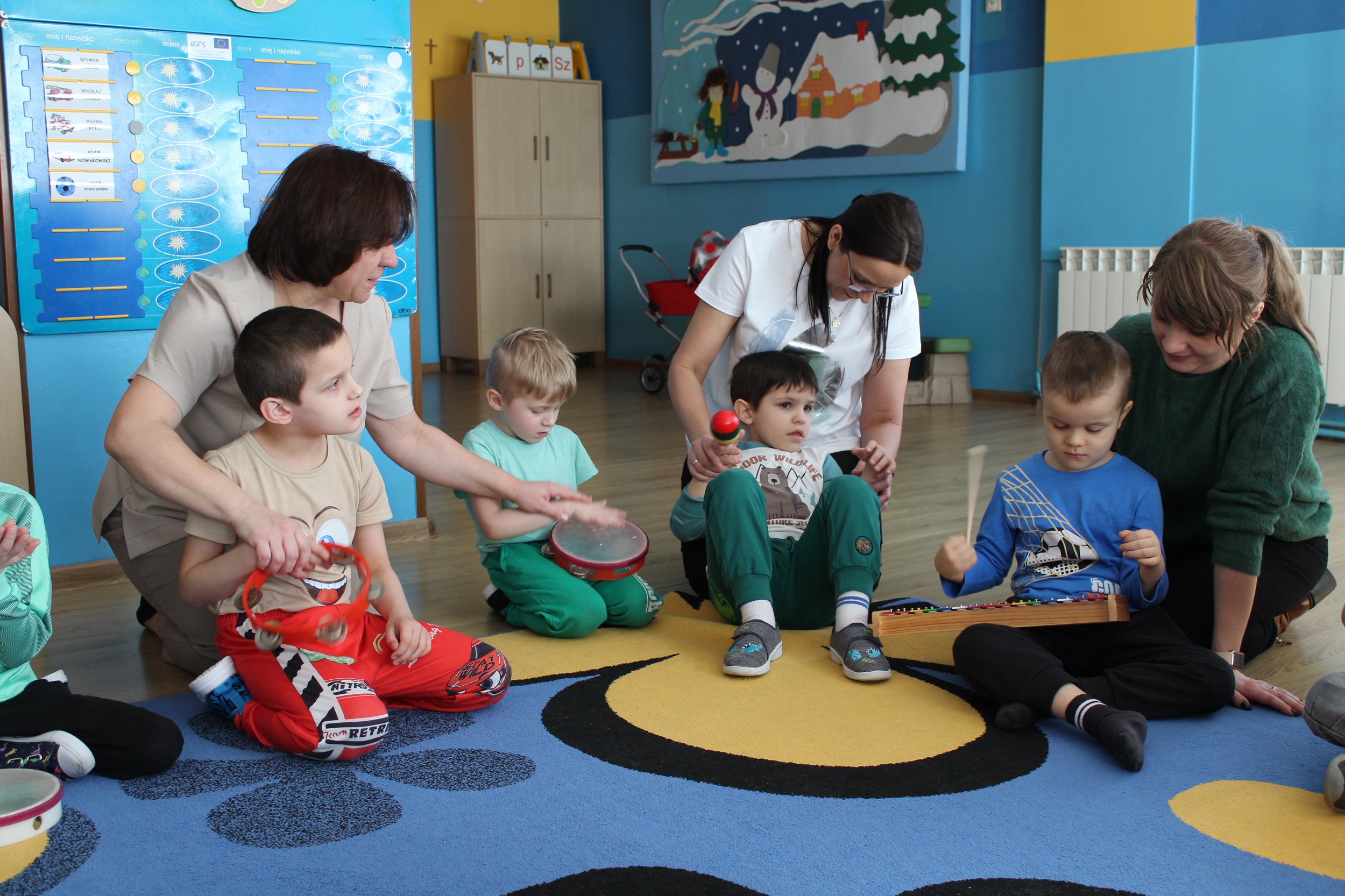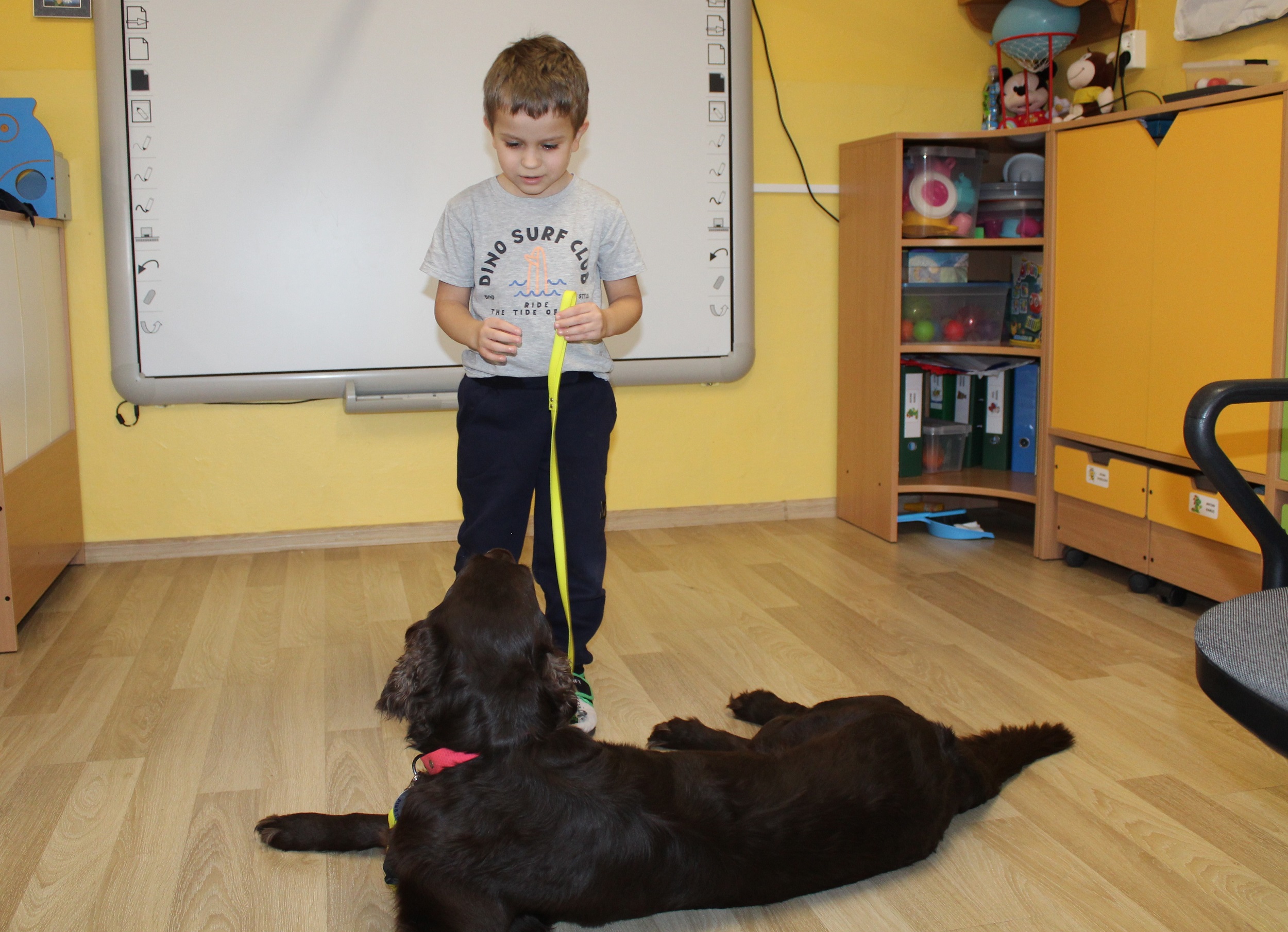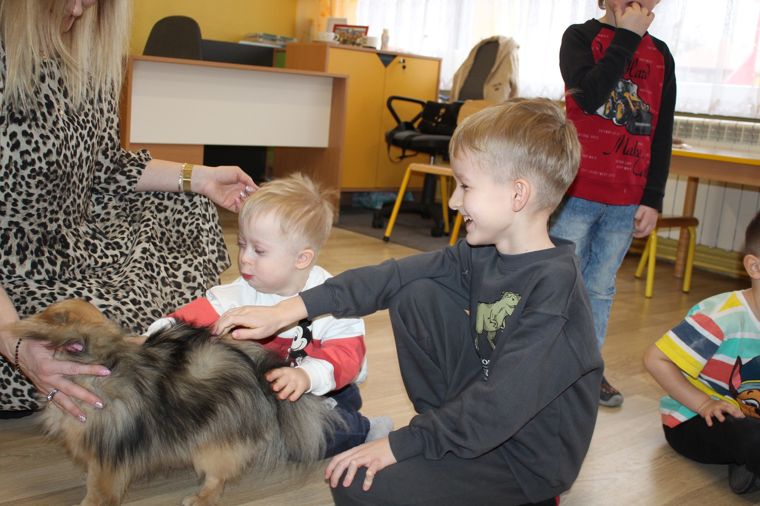 W dniach 25 i 26 lutego 2026 roku odbyły się w naszym przedszkolu Dni otwarte. Jak co roku przyszłe przedszkolaki i ich rodzice mieli możliwość obejrzenia przedszkola oraz poznania organizacji pracy w placówce. Nasi Goście wzięli udział w zajęciach dogoterapii prowadzonych przez terapeutów Fundacji Ama Canem z Łodzi, które były okazją do rozwijania zaufania i nawiązywania pozytywnej więzi z czworonogami. Uczestniczyli także w zajęciach rytmiczno - umuzykalniających, podczas których przedszkolaki doskonaliły umiejętności wokalne oraz rozwijały inne formy ekspresji muzycznej: ilustrowały gestem i ruchem treść piosenek, tworzyły akompaniament do utworów na instrumentach perkusyjnych.