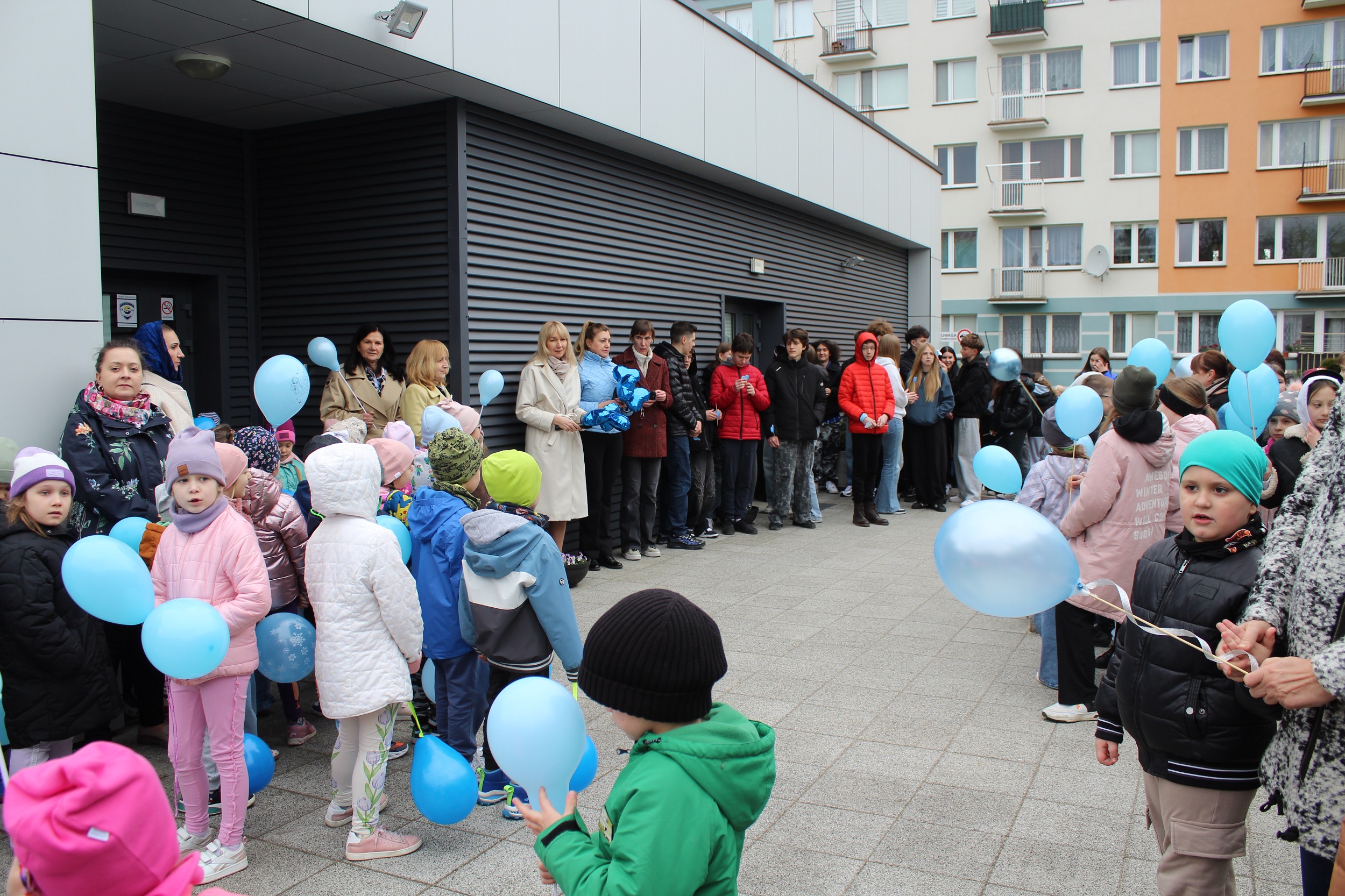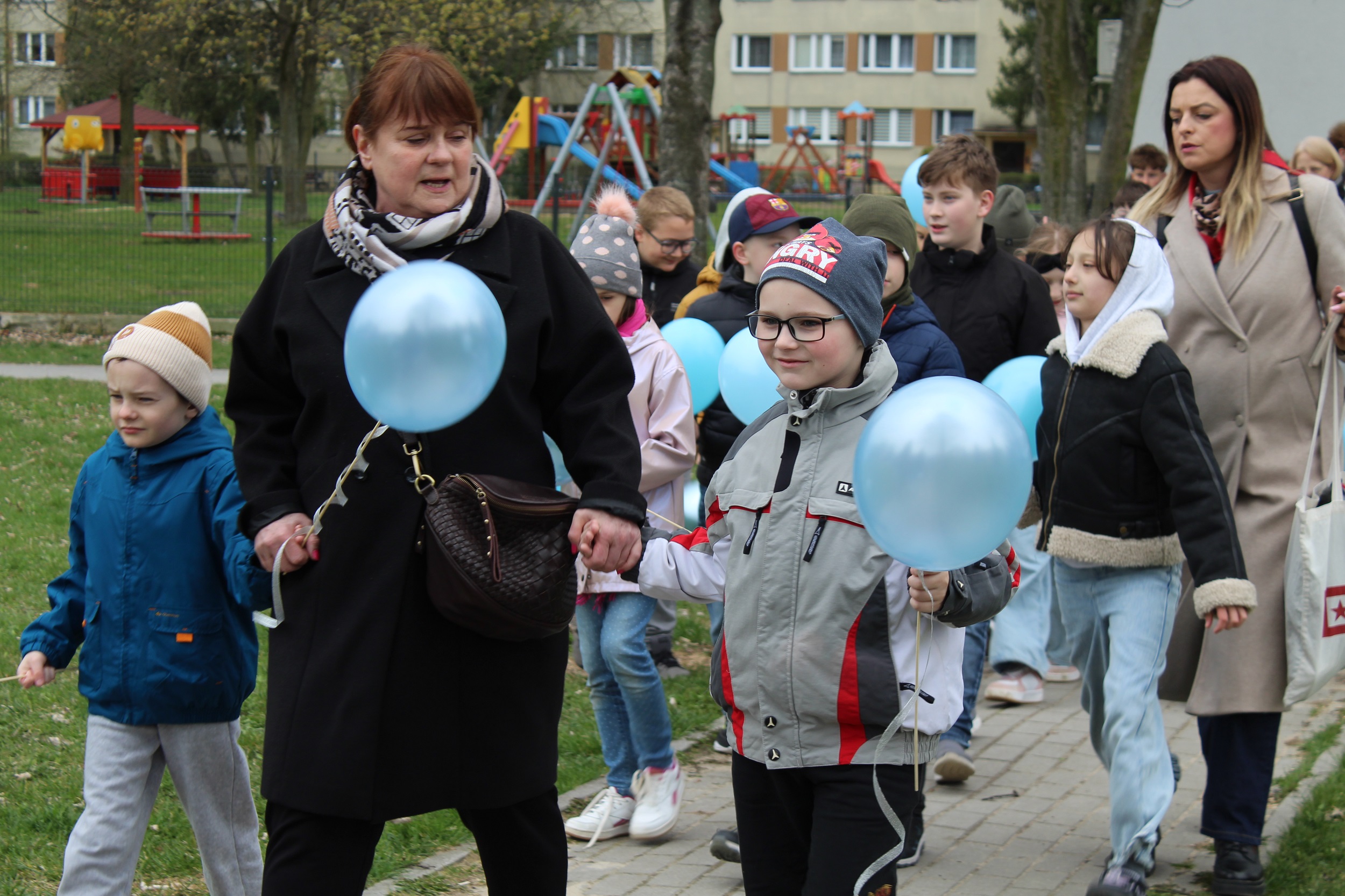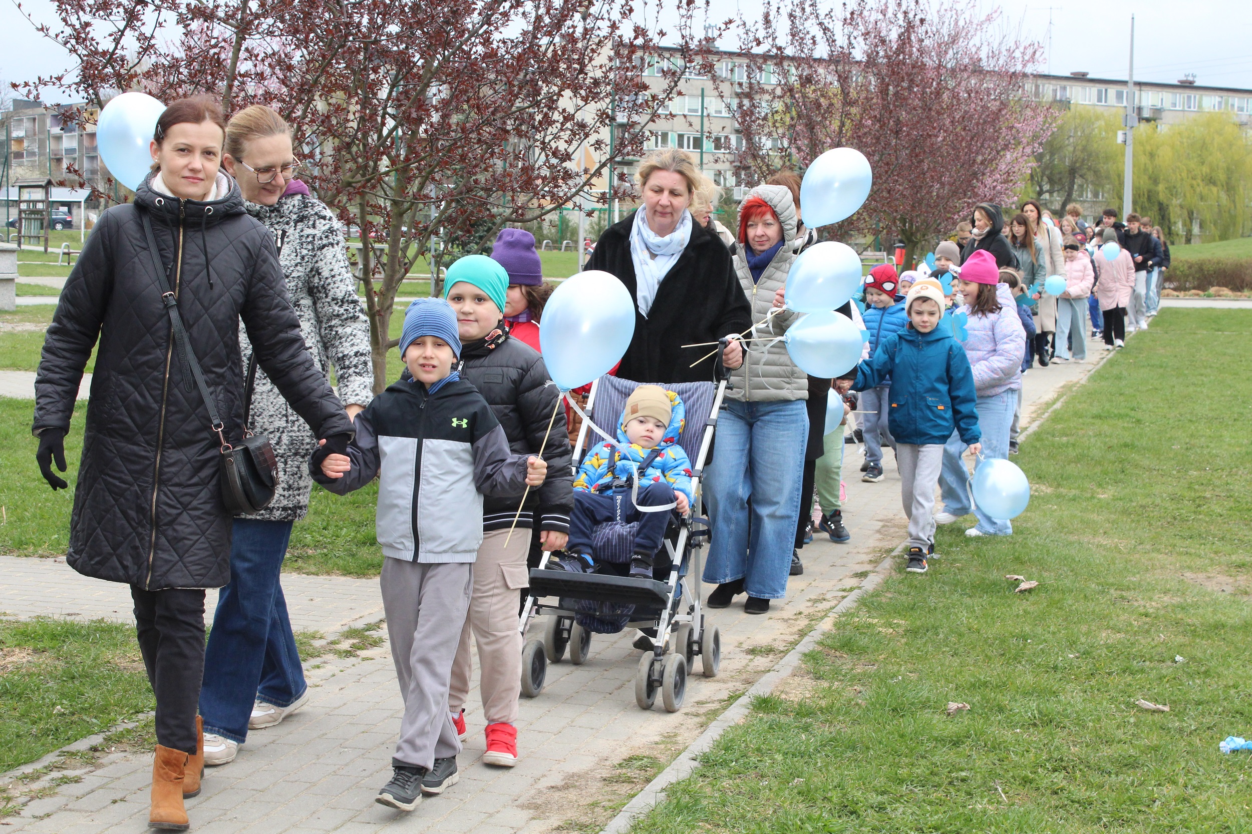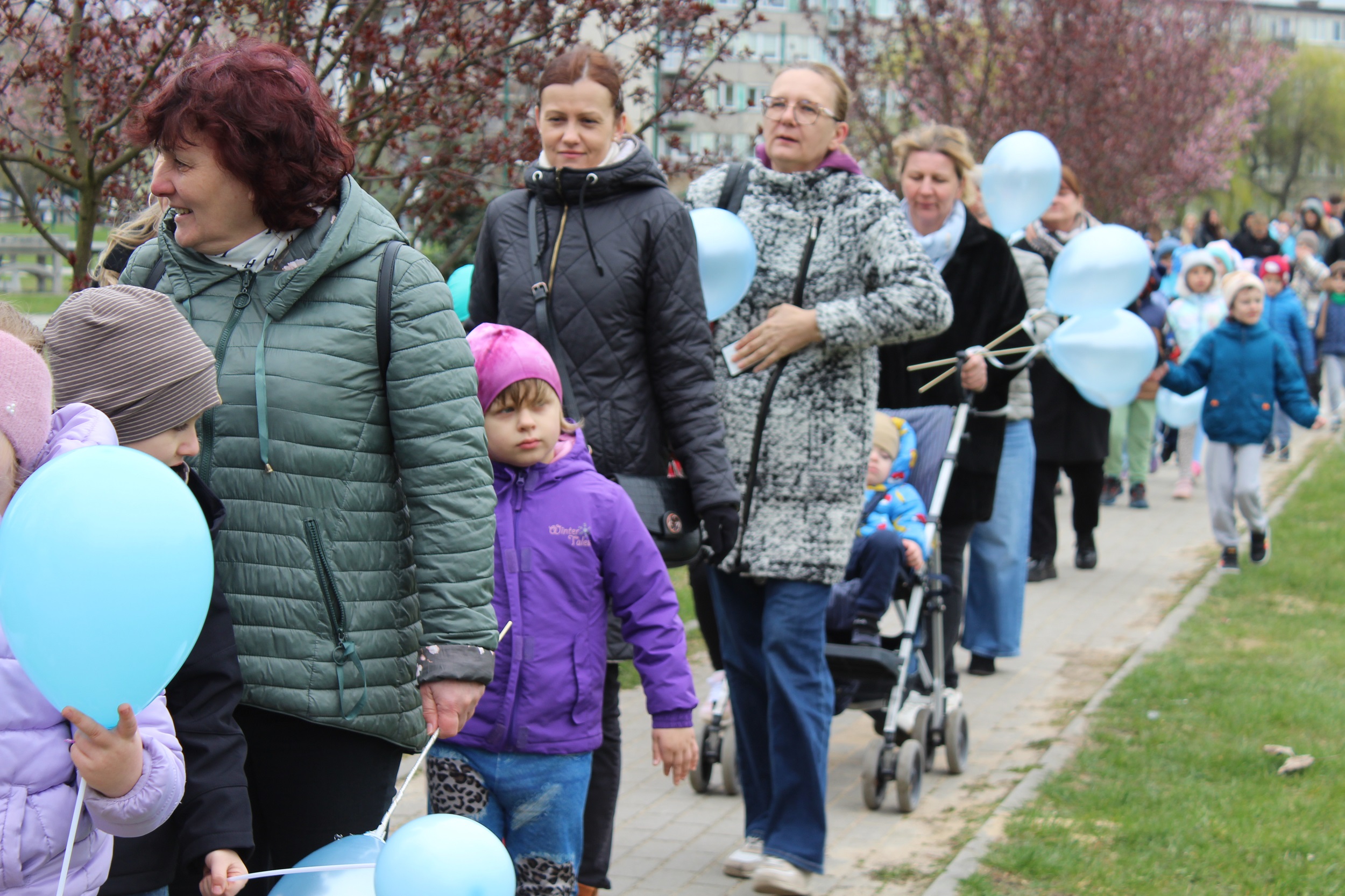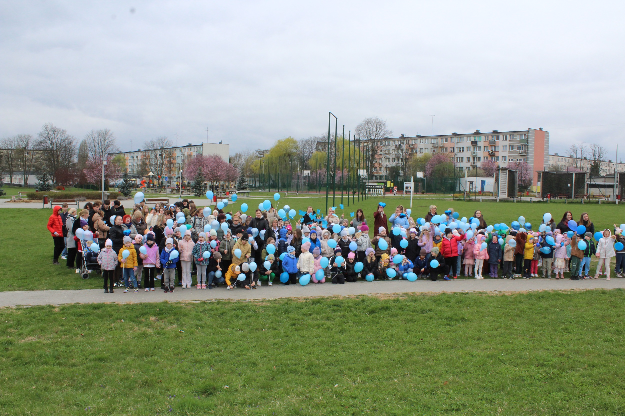 Choć pogoda nas nie rozpieszczała - było pochmurno i chłodno - atmosfera od samego początku była gorąca i pełna wzajemnej życzliwości. Spotkanie rozpoczęliśmy od wspólnego odśpiewania piosenki „Błękitne serca”, po czym dumnie wyruszyliśmy na przemarsz w okolicach przedszkola. Naszym znakiem rozpoznawczym były niebieskie balony oraz papierowe motyle, które niosły dzieci , symbolizując solidarność z osobami w spektrum autyzmu. Na zakończenie wykonaliśmy pamiątkowe zdjęcia, które będą pięknym wspomnieniem tego pełnego jedności dnia.