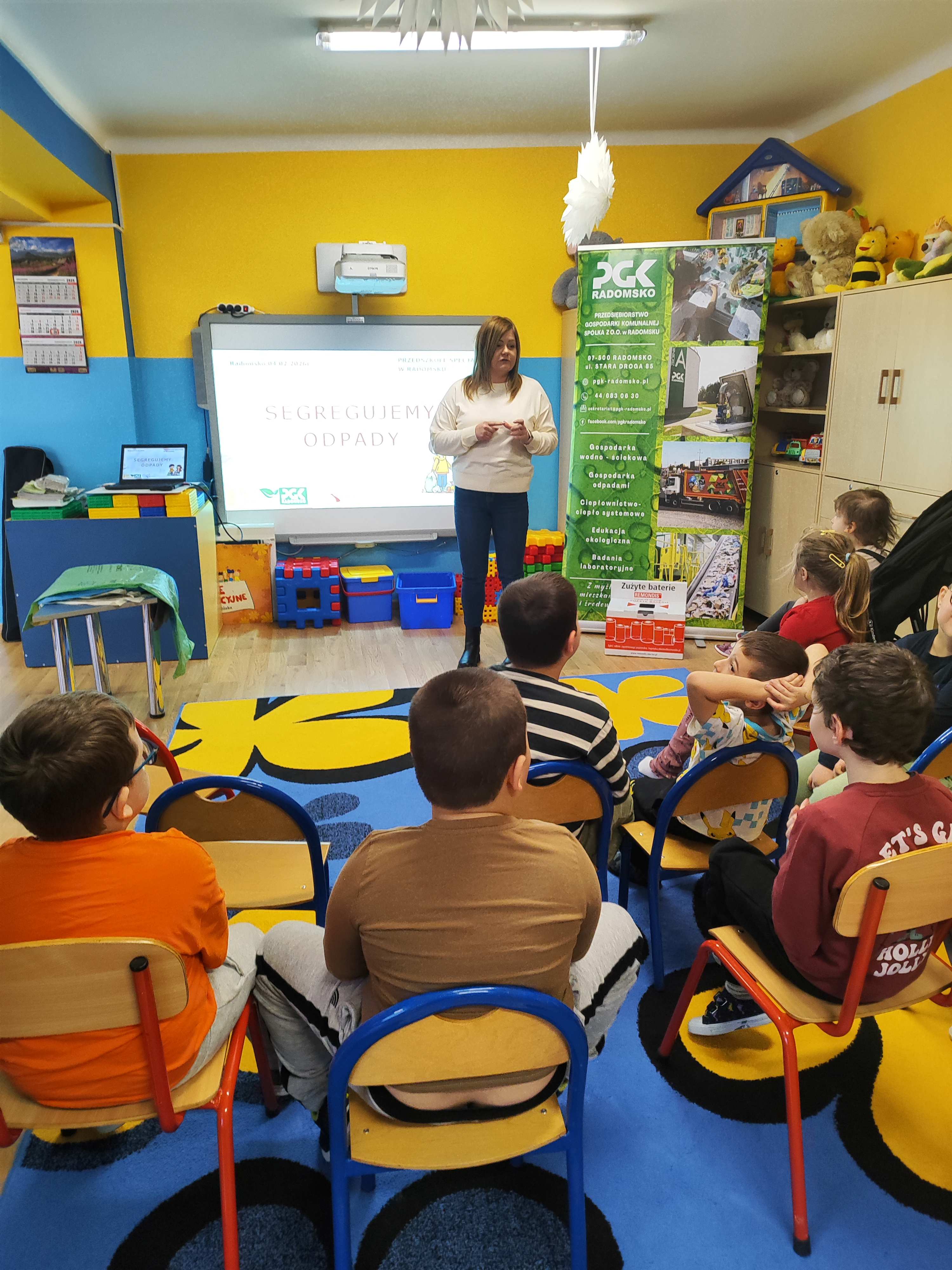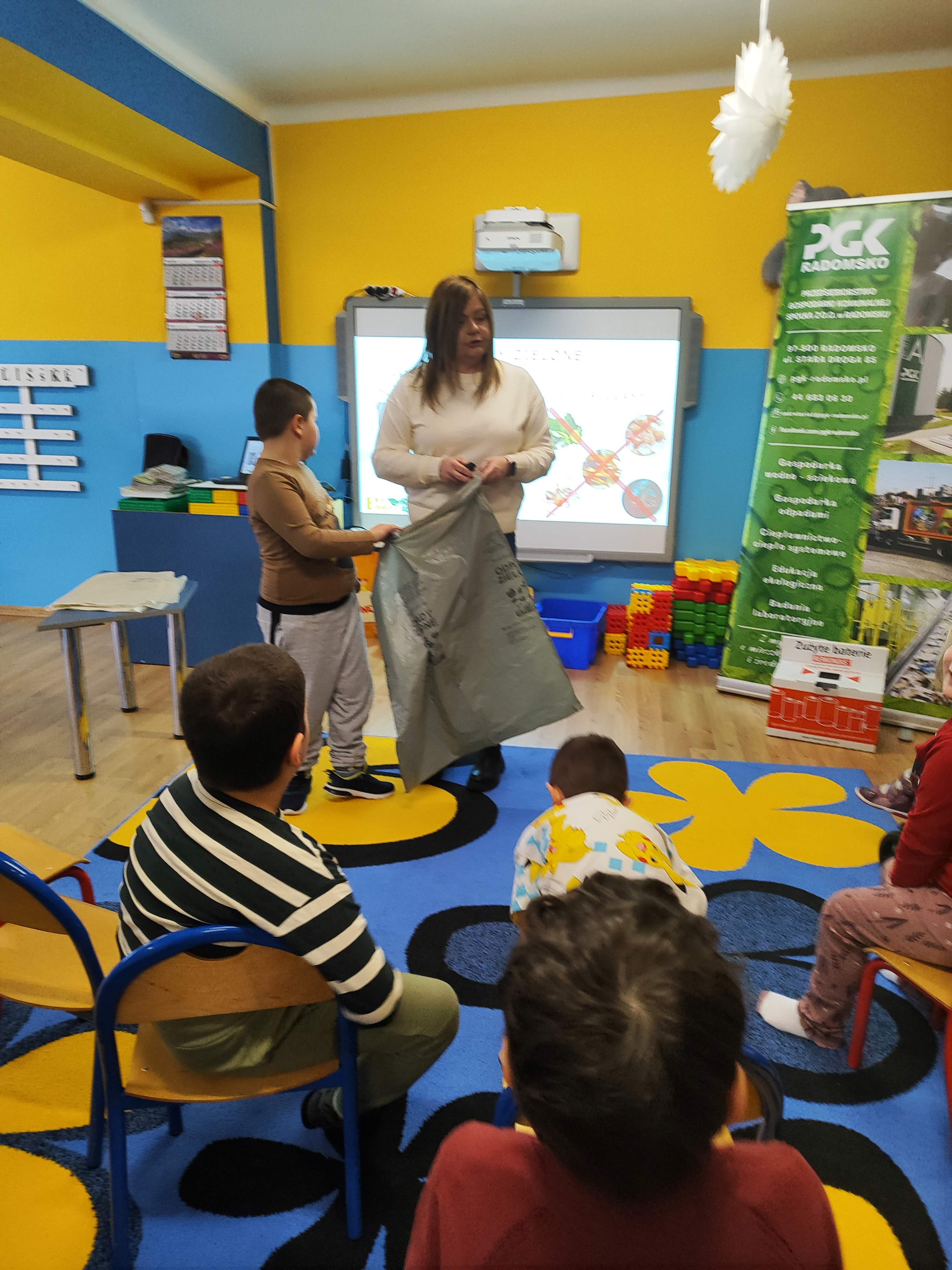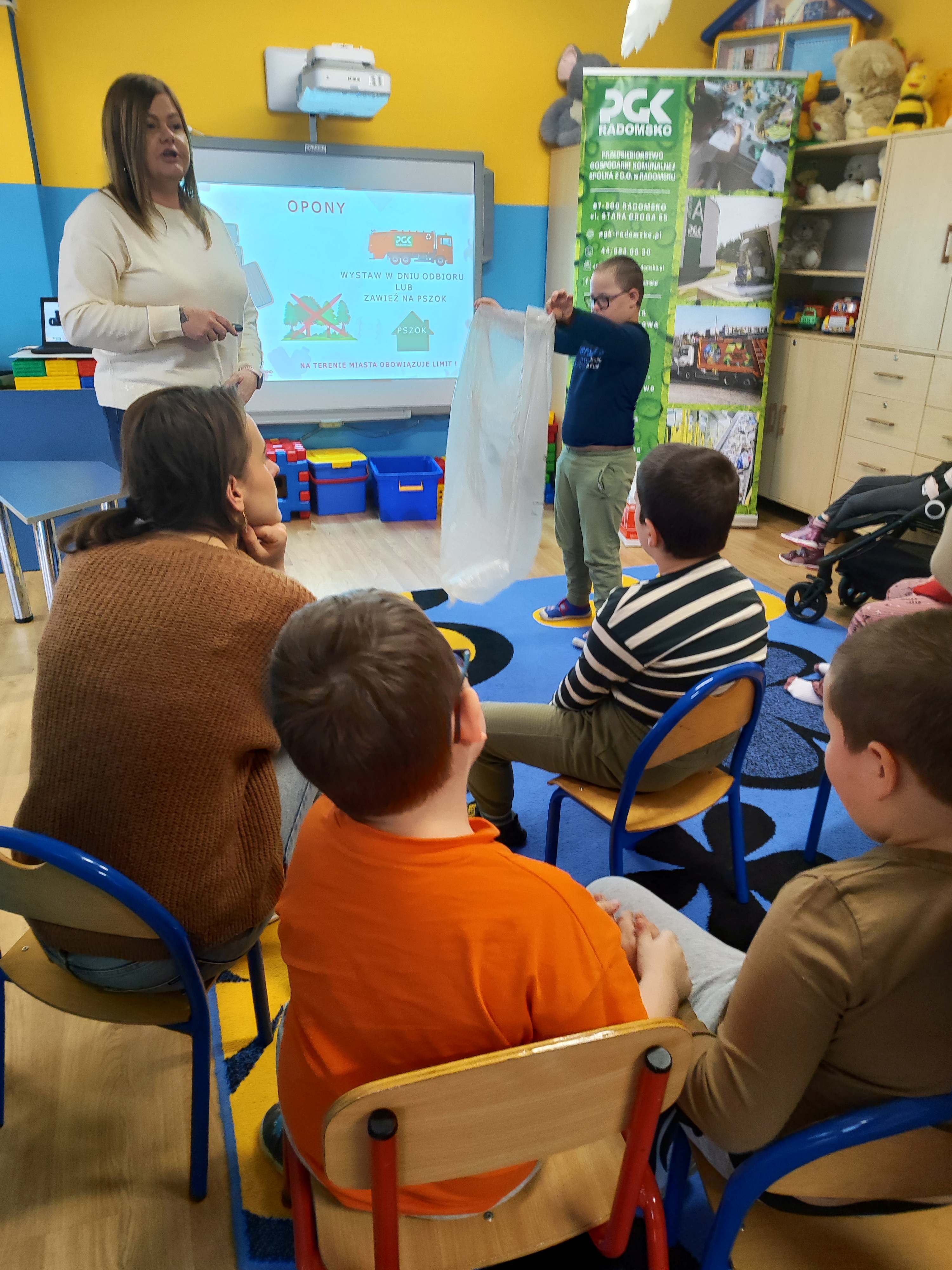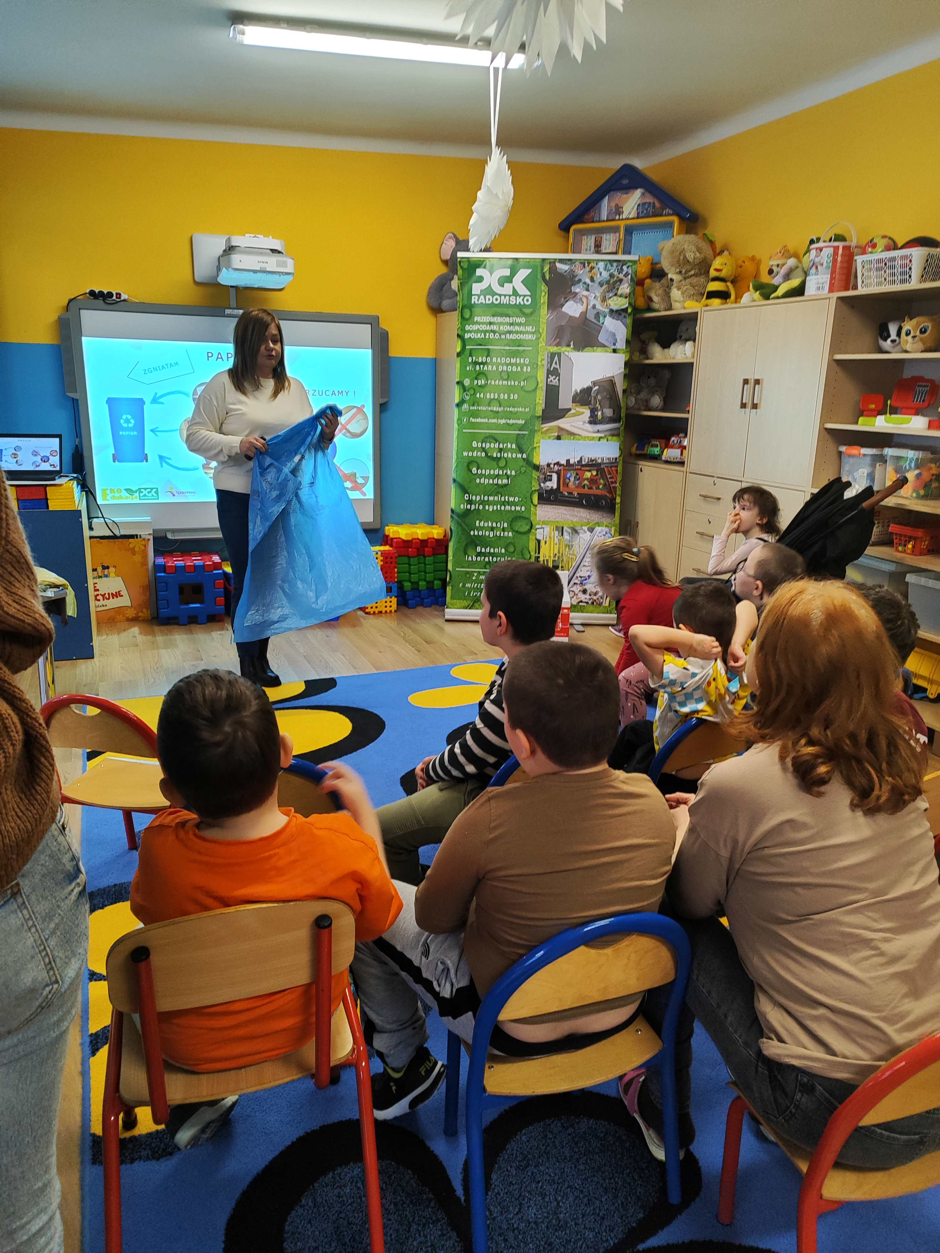 W dniu 04.03.2026r. nasze przedszkole odwiedziły panie z Przedsiębiorstwa Gospodarki Komunalnej w Radomsku z pogadanką na temat prawidłowej segregacji odpadów i właściwego postępowania z bateriami.