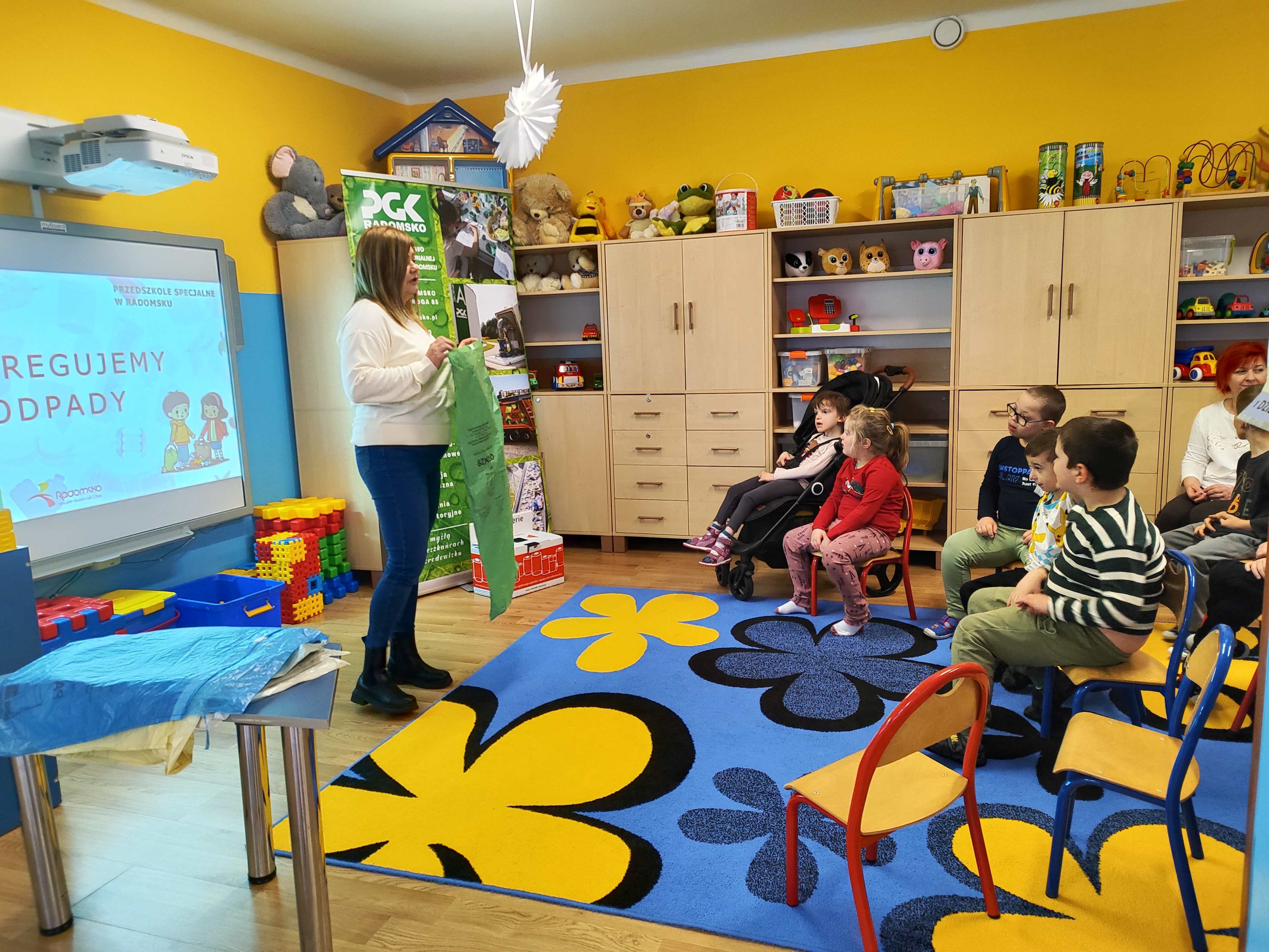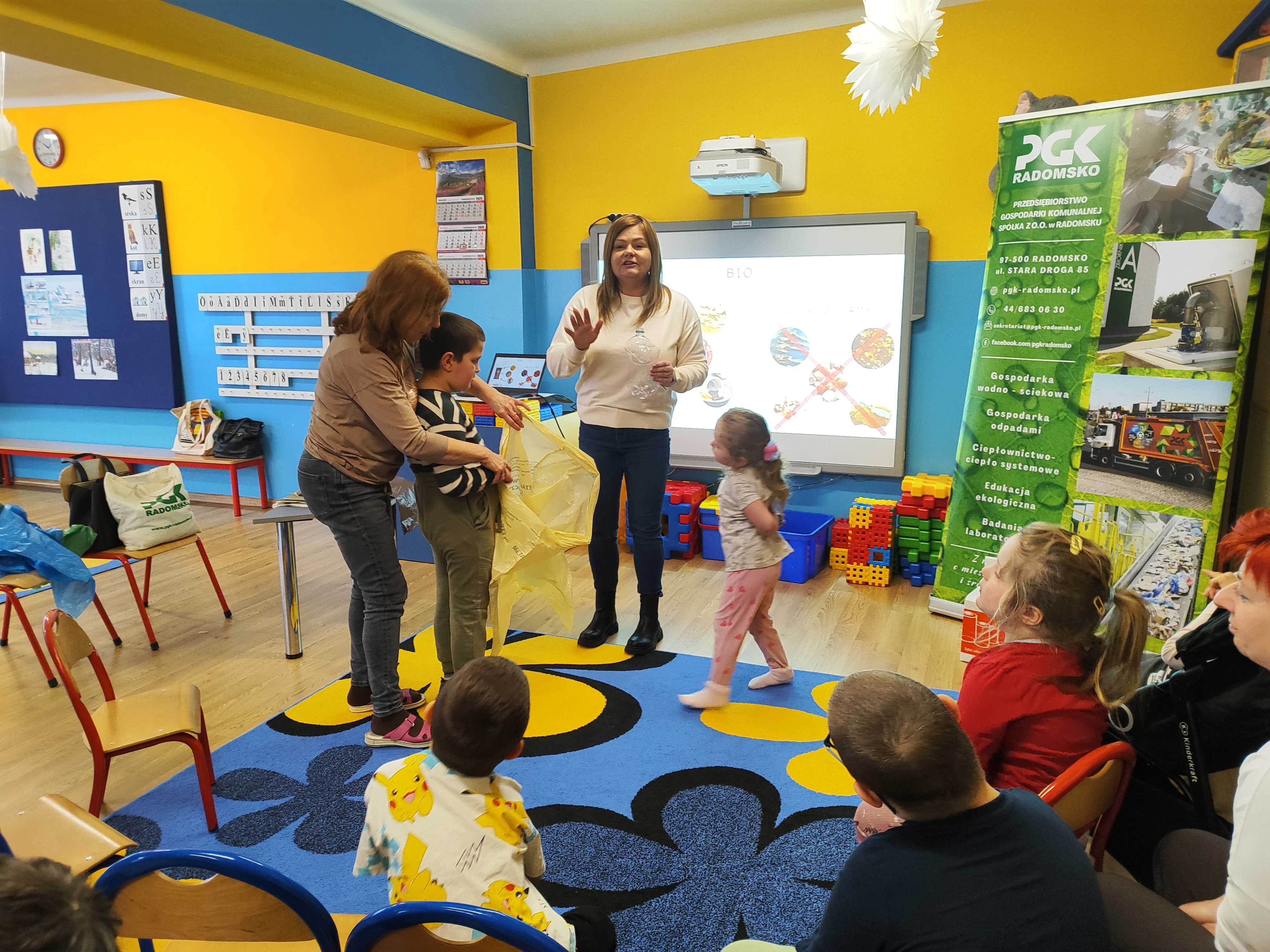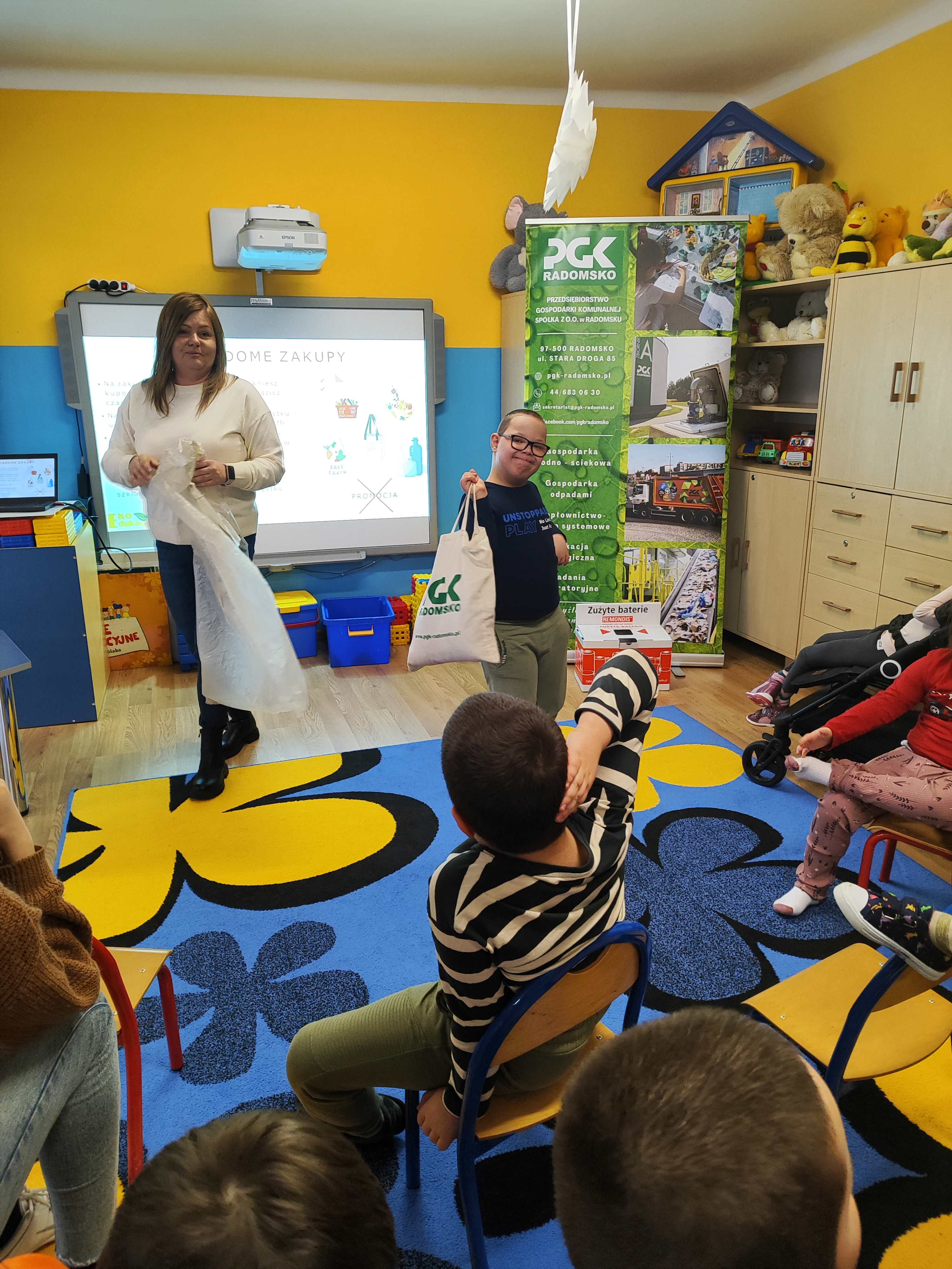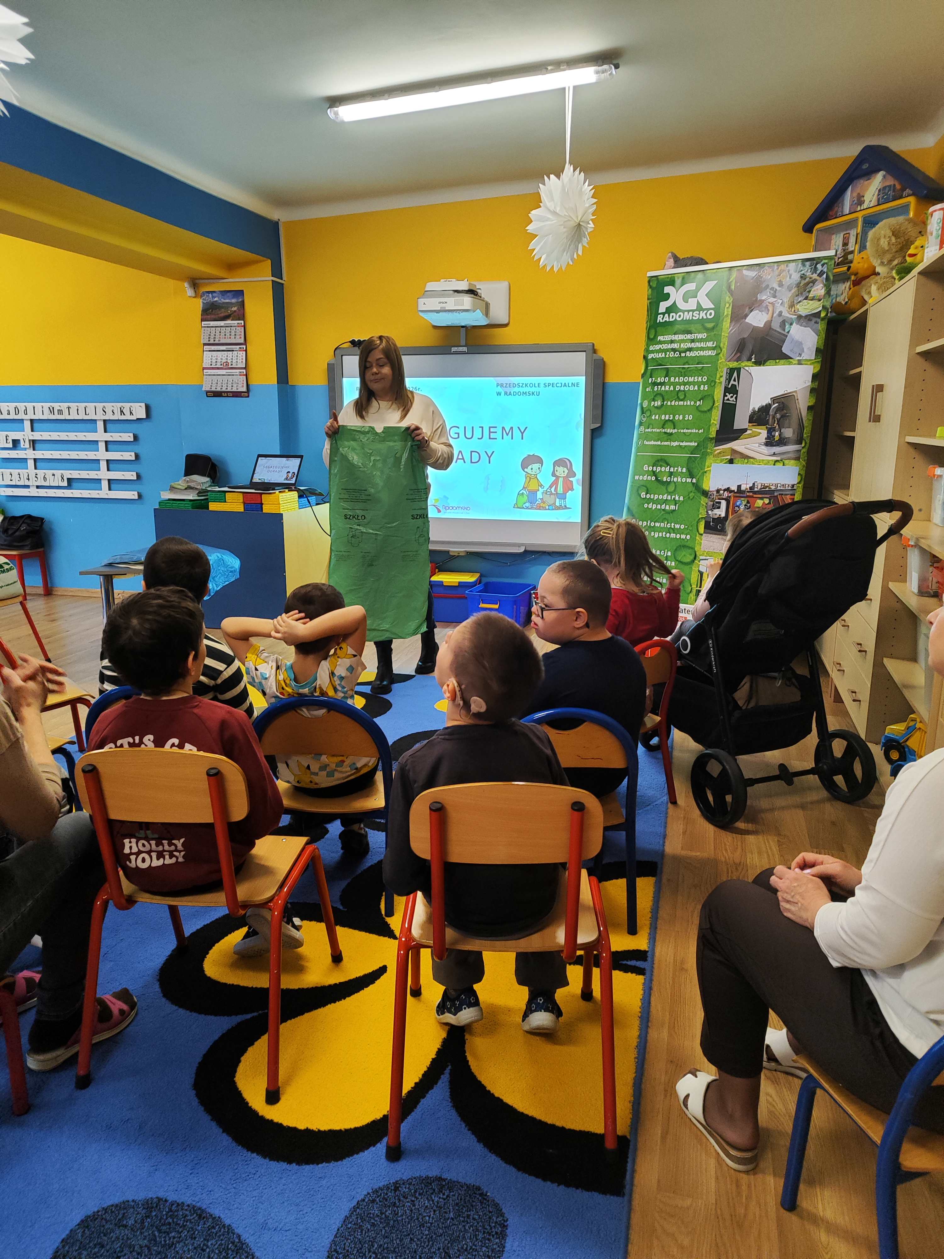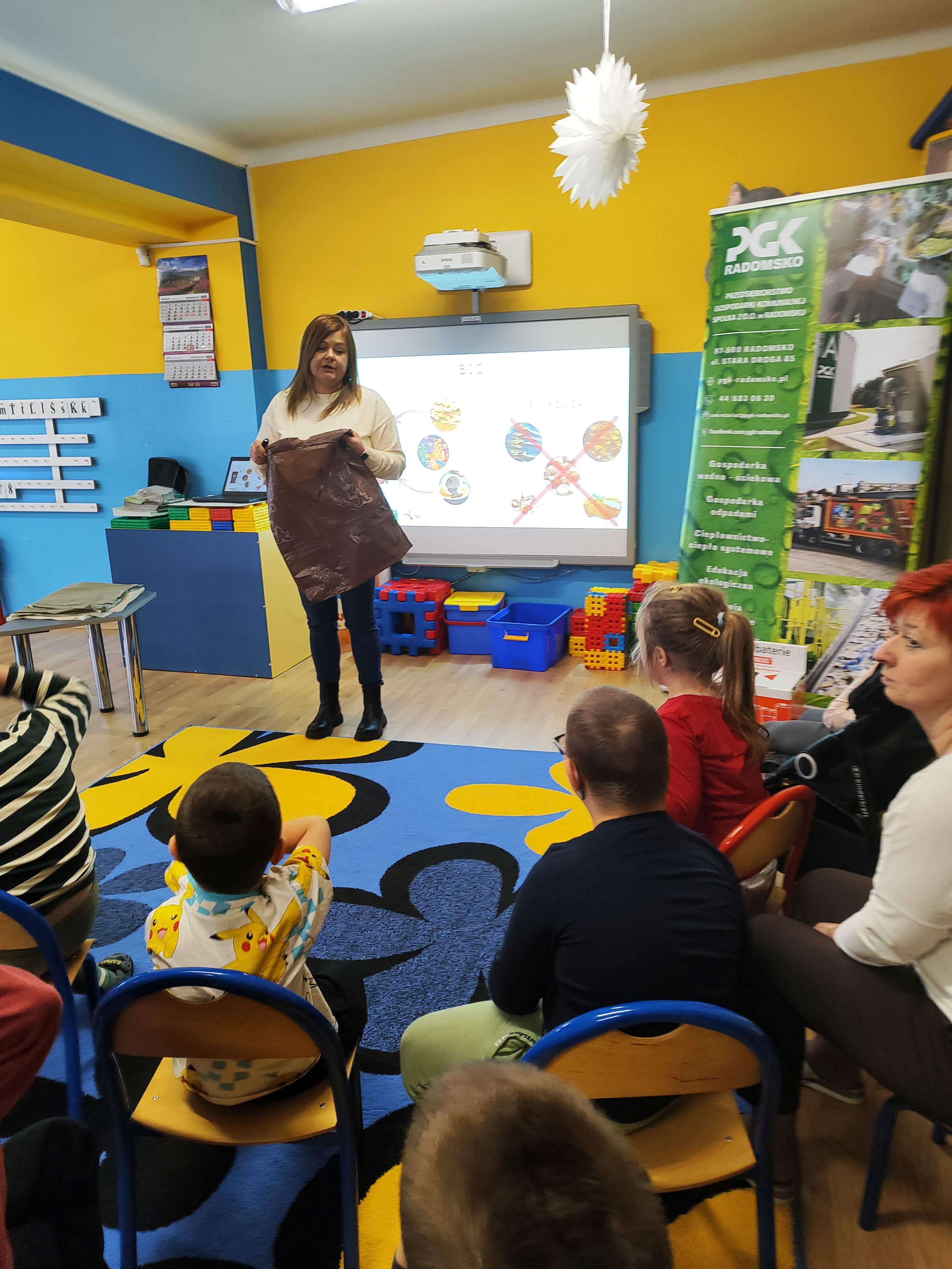 W dniu 04.03.2026r. nasze przedszkole odwiedziły panie z Przedsiębiorstwa Gospodarki Komunalnej w Radomsku z pogadanką na temat prawidłowej segregacji odpadów i właściwego postępowania z bateriami.