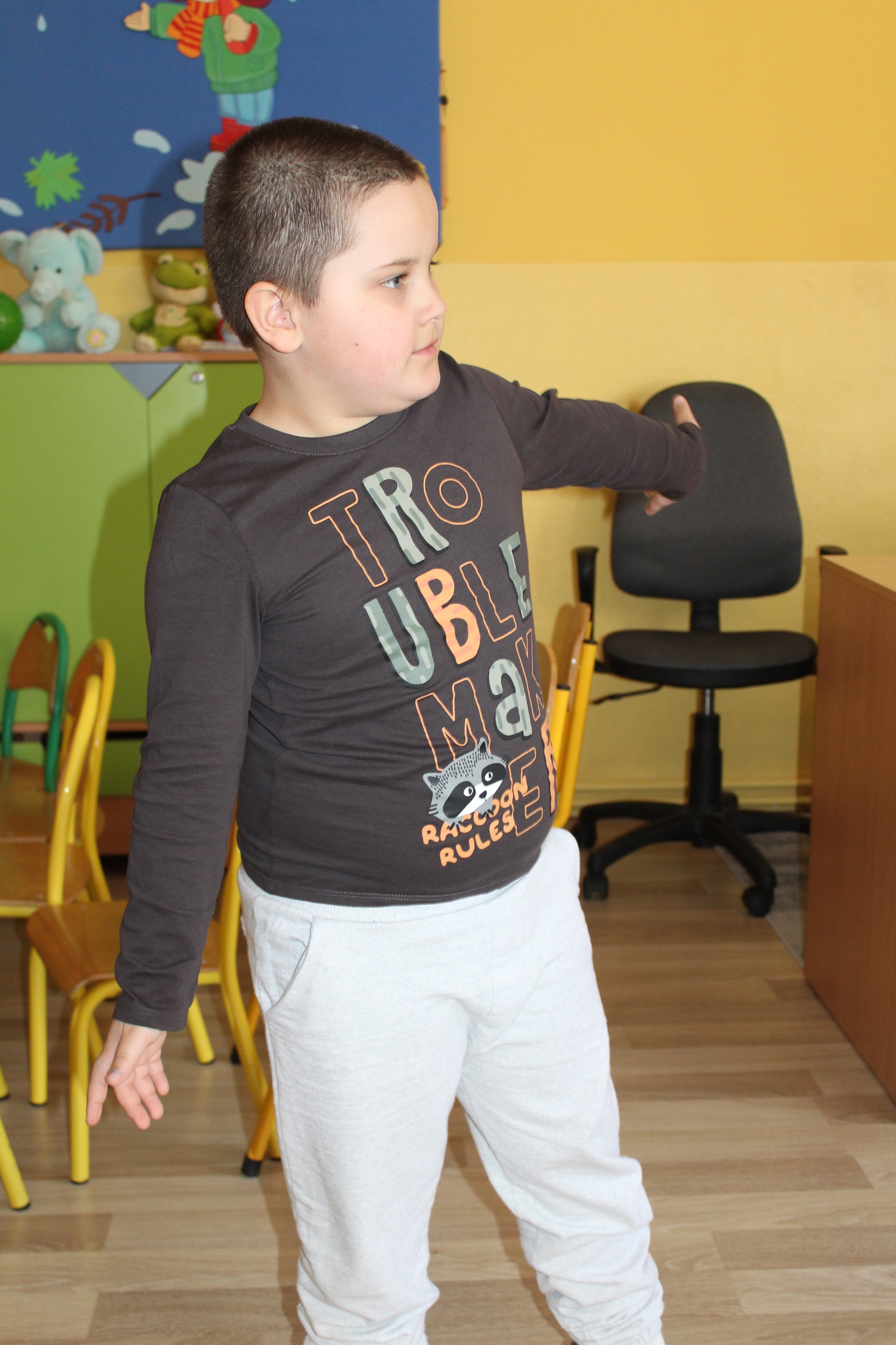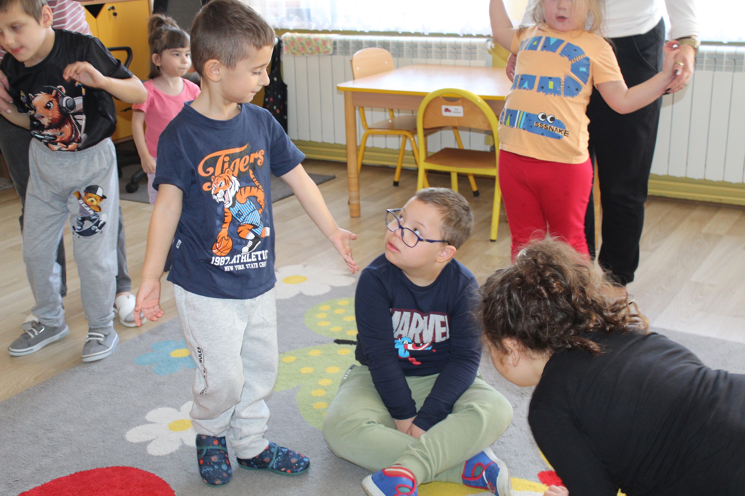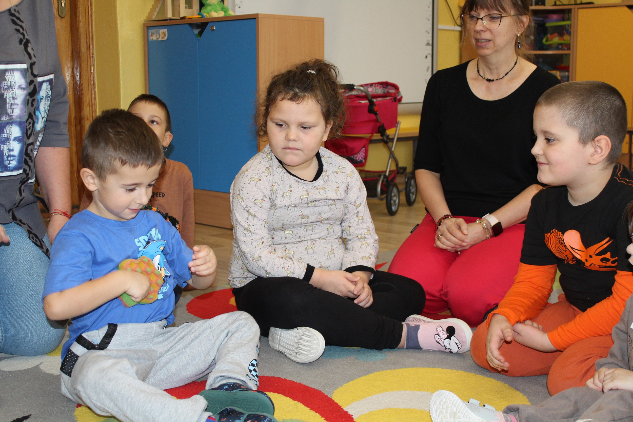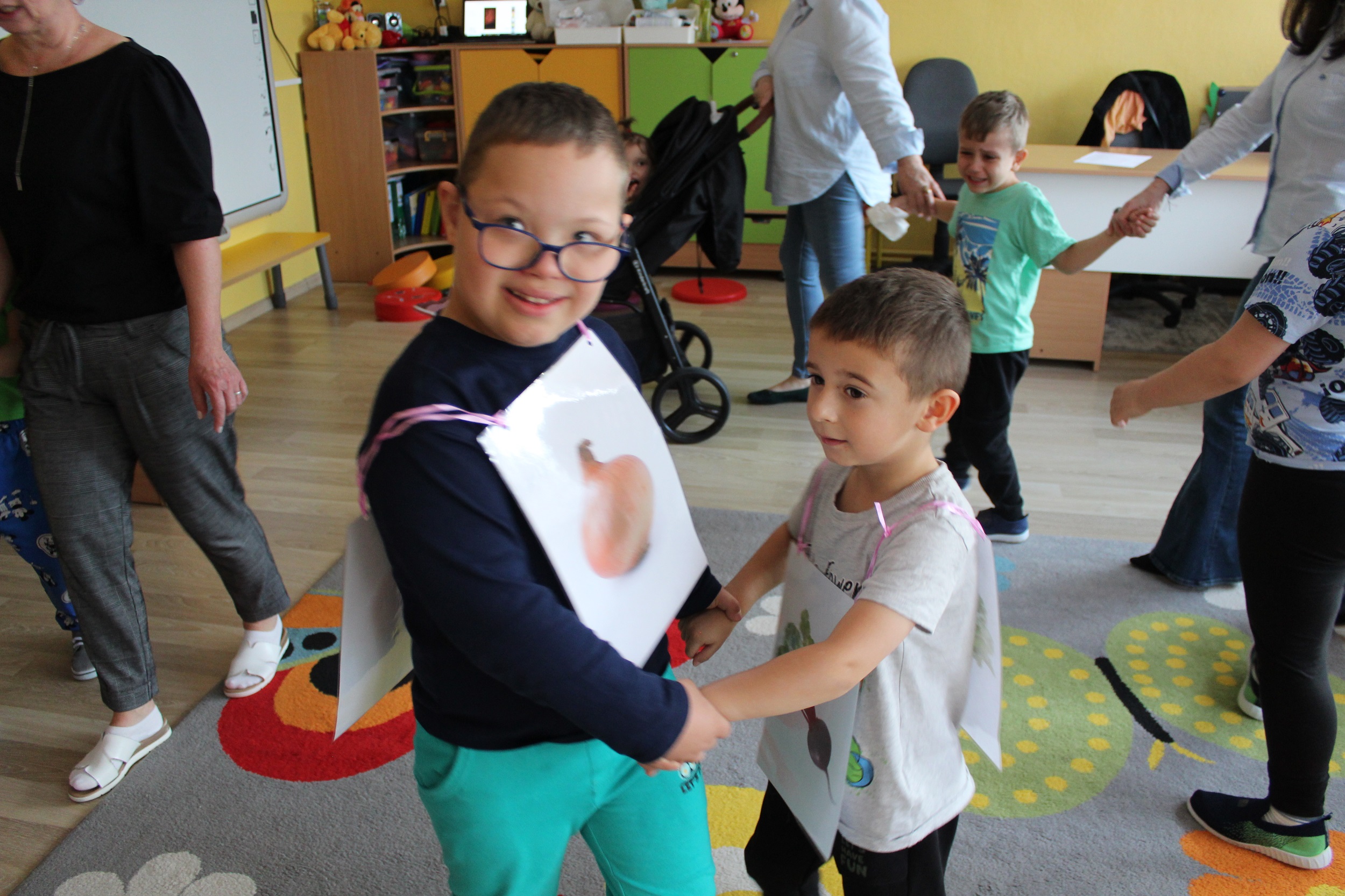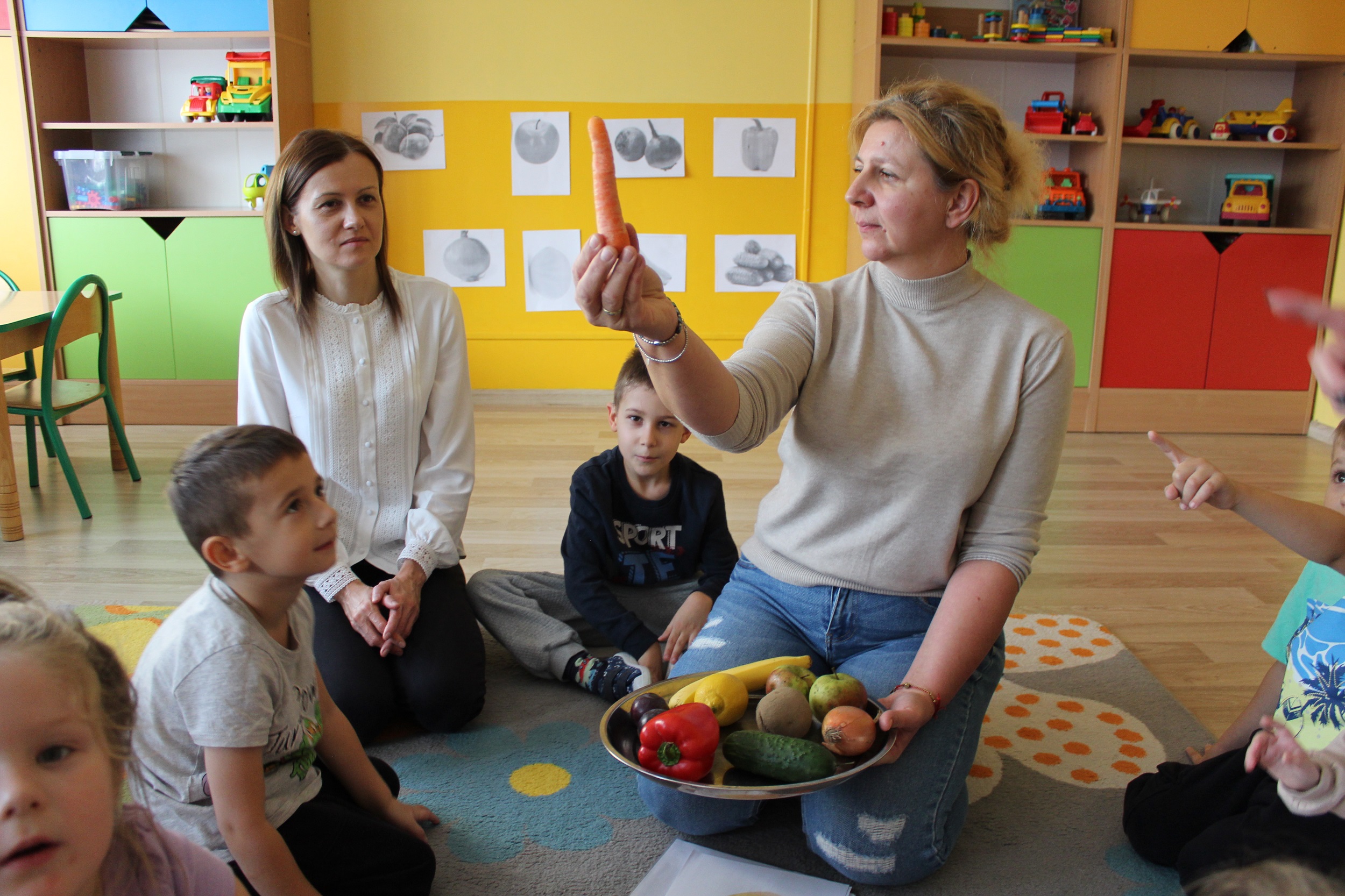 W kolejnym dniu uczestniczyliśmy w zabawach rytmicznych związanych z owocami i warzywami. Przy dźwiękach piosenki „Idą śliwki” uczyliśmy się ruchu i współpracy przy muzyce. Było to połączenie edukacji, ruchu i dobrej zabawy.